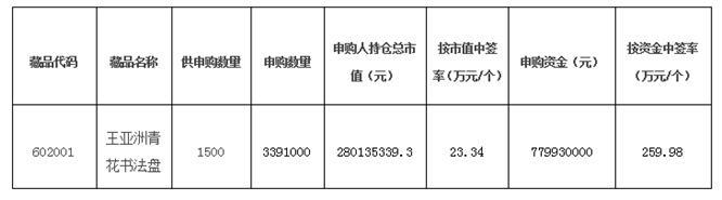 本次中簽分配方式按持倉市值優先分配規則,請廣大參與申購的投資會員關注交易賬號中持倉數量和資金變化情況。《王亞洲青花書法盤》將于2016年11月15日正式掛牌交易。