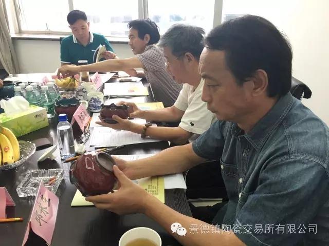 2016年8月20日上午9點,景德鎮陶瓷交易所第三期藏品掛牌專家評審會在景德鎮陶瓷交易所辦公大樓會議室順利召開。陶交所評審委員會專家李紹斌、歐陽摩一、邱永生、李一平和肖鵬專家出席了此次評審會,陶交所董事何政谷出席會議。